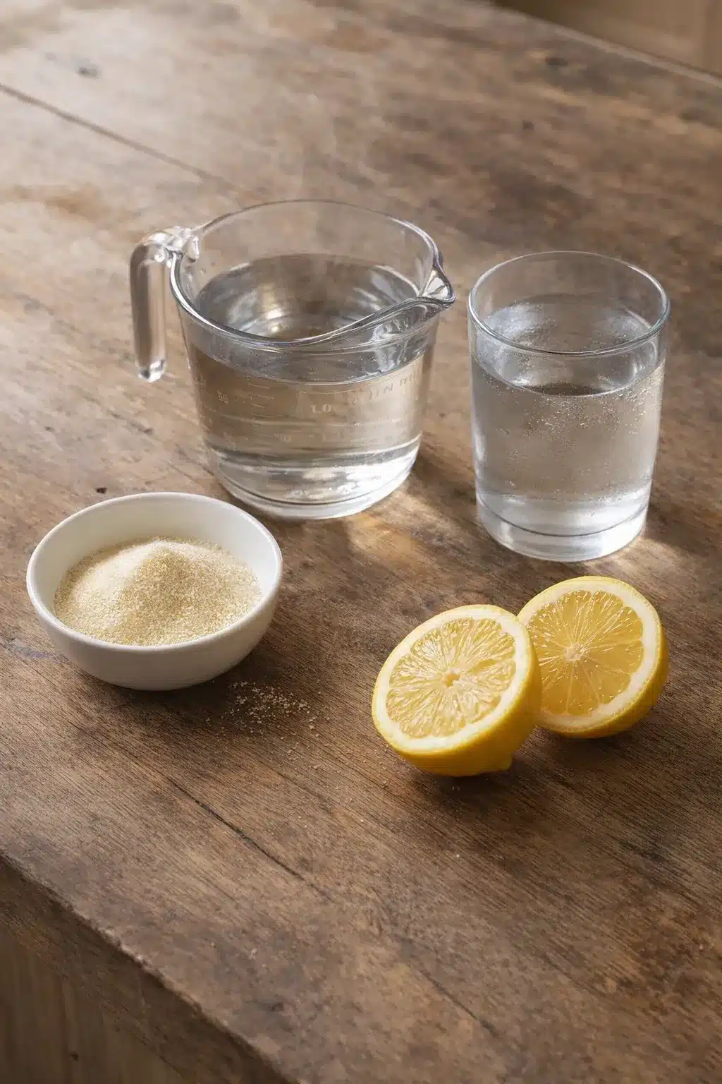 Make one baseline serving with 1 tablespoon unflavored gelatin, bloomed in 2 tablespoons cold water. Dissolve it with 1/2 cup very hot water (not boiling), then add 1/2 cup cold water or unsweetened tea. Add 1 teaspoon lemon juice and a touch of stevia or monk fruit if you like a bright, lightly sweet sip.