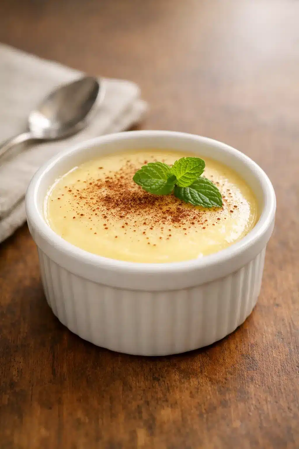 Cook your custard gently, temper the gelatin into the warm base, and strain for smoothness. Then chill until softly set. If you want an egg-free version with a similar silky result, try our vanilla panna cotta recipe.