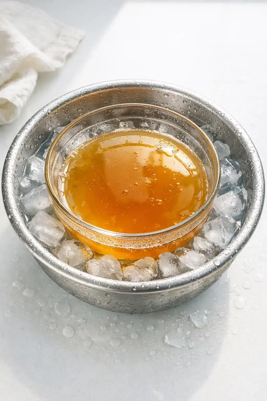Cooling strategy matters from the moment your mixture is warm. First, reduce the temperature quickly using an ice bath. Set the bowl in ice water, then stir until the outside feels cool. Next, portion into shallow containers so the center chills faster.