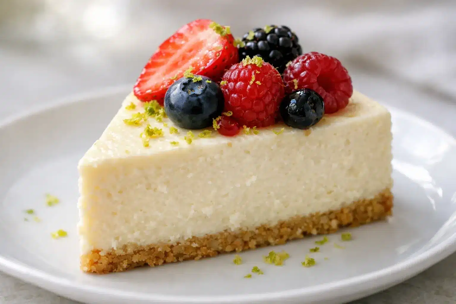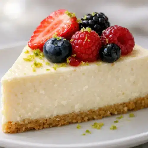 Keep leftovers covered in the refrigerator for a softer texture for up to 4–5 days, or freeze for up to 1 month for longer storage. Thaw slices in the fridge for several hours or at room temperature for 20–30 minutes for a creamy finish. You can assemble up to two days ahead, but add delicate toppings like fresh berries right before serving.
